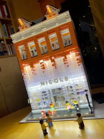 Wie gesagt, völlig egal, was auf dem Label meines T-Shirts steht, auch wenn ich einige Marken bevorzuge, ist es ziemlich wurst - solange es hübsch und bezahlbar ist. Neuerdings kann ich aber eh keine neuen Kleidungsstücke mehr kaufen. Ich investiere in Lego & Co. Außerdem in Zeiten von "HomeOffice" und wenigen bis gar keinen Kundenkontakten, braucht's auch nicht wirklich Jacken und Kleidungsstücken für die Straße. Für's Büro reicht der T-Shirt- und Jeans-Bestand noch eine ganze Weile. Nichtsdestotrotz... ich hab jetzt einen eigenen Klamottenladen. Richtig gelesen. Einen eigenen! Hab mich da bei der Beschriftung irgendwie verbaut und schneller als ich (oder eine meiner Minifiguren schauen konnten), stand da "Nicole" in hübschen weißen Buchstaben an der Fassade.